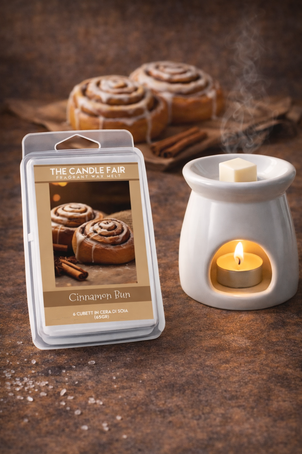 WAX MELT: 6 Cubetti in cera di soia da sciogliere nel bruciatore.Peso +/- 65 gr